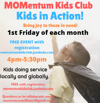 Friday, November 7th - Leftover Halloween Candy Collect: Kids turn in their Halloween candy in exchange for tickets at the MOMentum Store. Then package candy bags for Veterans.